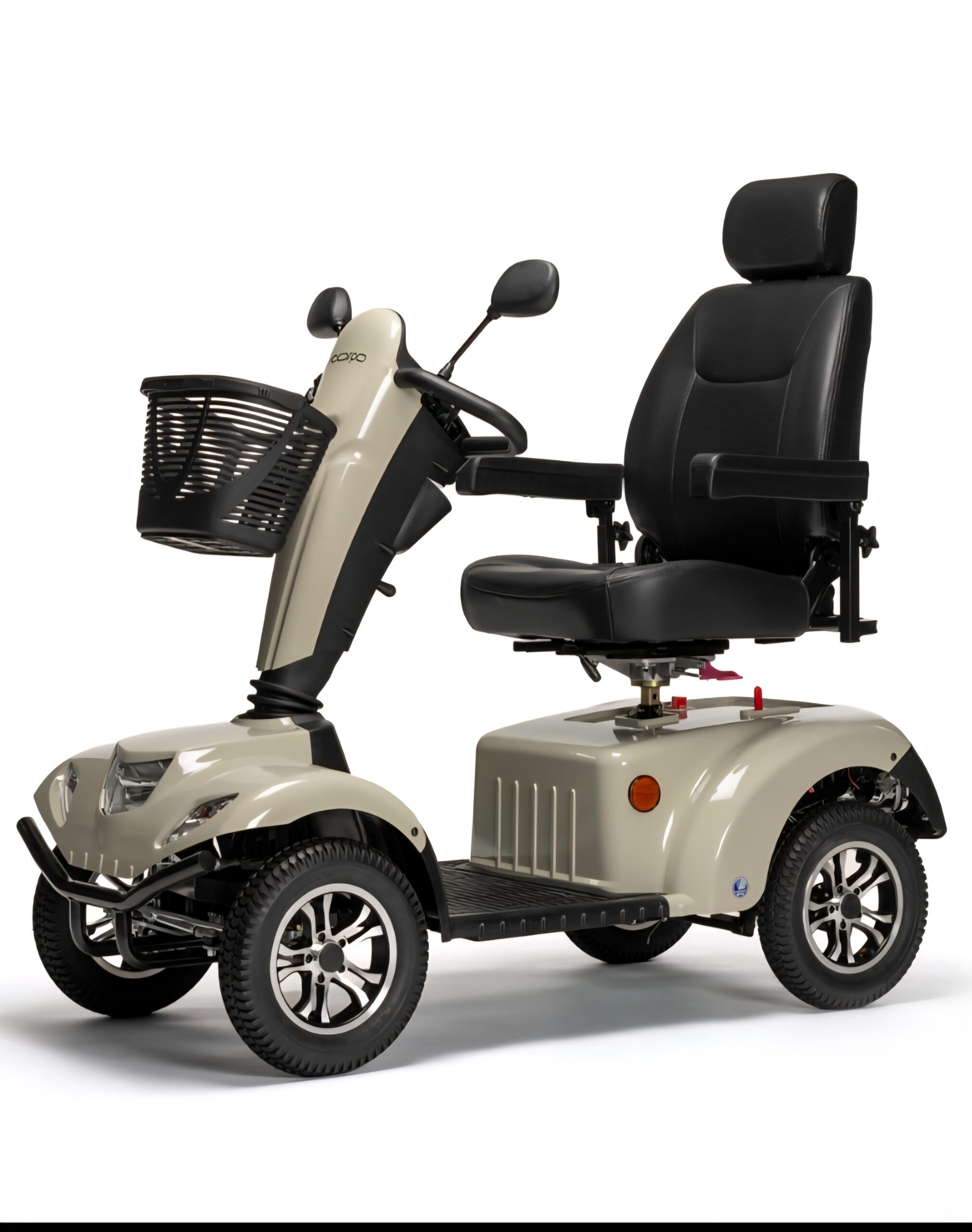 De Carpo Special Edition is een zeer goed geveerde en gebruiksvriendelijke scootmobiel. De scootmobiel Carpo Special Edition biedt de gebruiker rijcomfort en is bovendien erg wendbaar en gemakkelijk te besturen. de Carpo 2 Special Edition is een scootmobiel met een maximale snelheid van 15 kilometer per uur. Ook bij een hoge snelheid zult u het comfort van de scootmobiel Carpo2 Special Edition ervaren. Met een gemiddeld actieradius van 45 km kunt u heerlijk door de stad rijden of een langere rit door de natuur maken. Het elektronische display, voorzien van onder andere kilometerteller, wordt standaard geleverd. De scootmobiel Carpo 2 Special Edition wordt geleverd in de kleur Ivory, Umbro Grey, zilvergrijs of rood Metallic